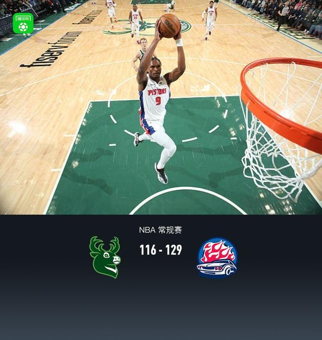 第四节雄鹿莱恩-罗林斯拿下10分,活塞坎宁安拿下7分,最终雄鹿116-129不敌活塞