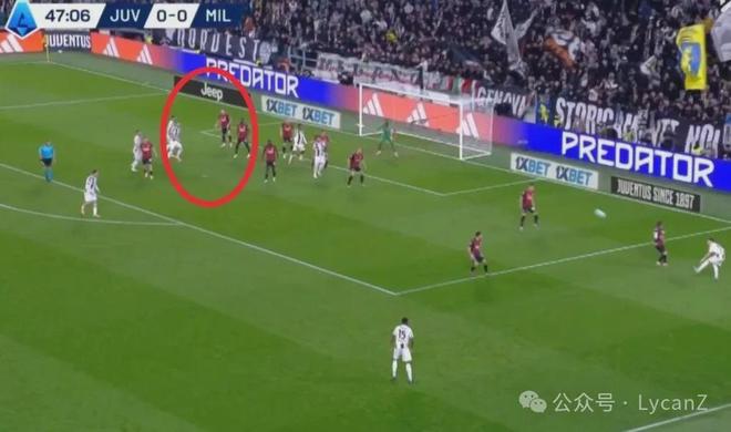 第47分钟尤文图斯战术角球传中,原本后点2V2对位盯防,但中路争顶后弹到无人地带,前插的加蒂近距离凌空被迈尼昂挡出,对位盯防加蒂的就是随后顾着举手示意越位的托莫里。