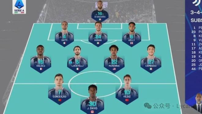 这并不是尤文图斯的最强阵容,赛前存疑的后防核心布雷默和主力中场K.图拉姆最终都没有进入首发,当然,主帅图多尔一直都没有搓到一套合适的主力阵容。